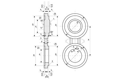 | Dy | D | d1 | d2 | A | B | b | b1 | h | d | Масса, кг не более |